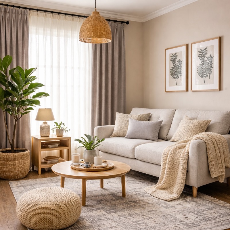 Minimalist curtain designs are also gaining popularity in JVC Dubai. Many homeowners now prefer clean lines, soft colors, and simple patterns that create a calm and elegant environment. Neutral shades such as beige, cream, grey, and off-white are widely used because they blend easily with modern Arabic interiors. These colors reflect light beautifully and make rooms appear more spacious and bright.